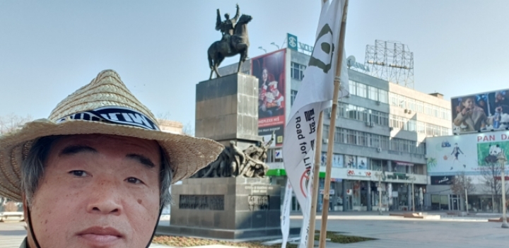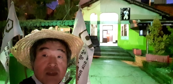 Today, I walk this flat way a lot. On Sunday, drivers on the main street sometimes honk a horn and thumb at the traveler who is waving the flag. In this case, Asians are intimated without hesitation.