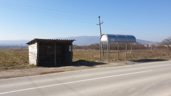 The old bus stop looks better in the rain and wind than the new.