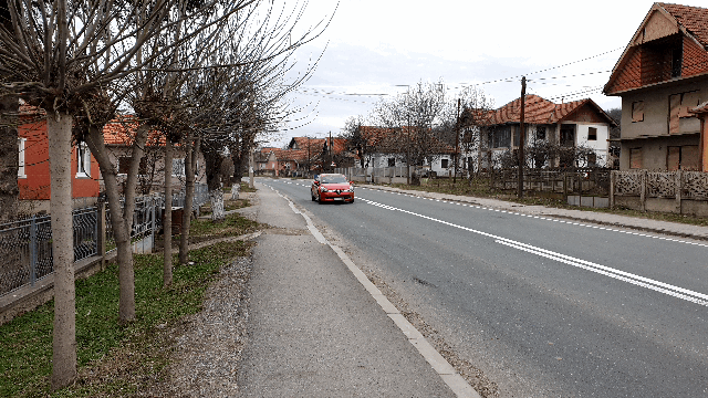 34. I am approaching Paracin. It is good to put exact sideway at one side of the street.