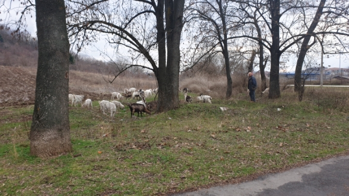 42. 시내의 녹지에서 양떼를 만났다.