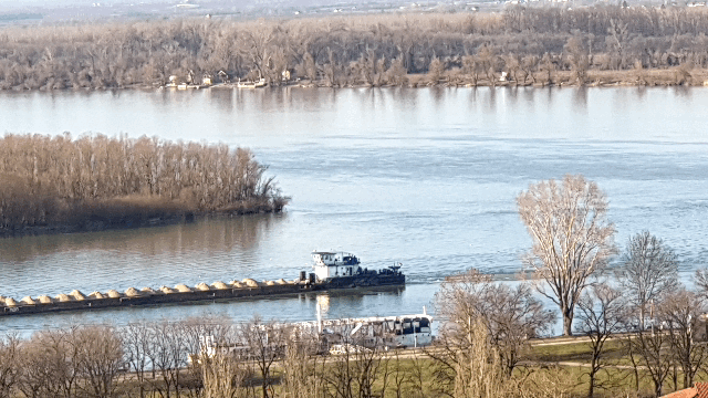 33. 지류인 Sava강쪽으로 화물선이 거슬러 올라간다. 유럽대륙은 철도가 도입되기 전에 이 강들이 젖줄기였다.