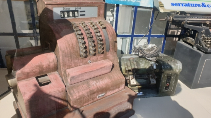 10. 시내를 걸어가는 가운데 옛타자기를 진열하는 창구를 지나면서.