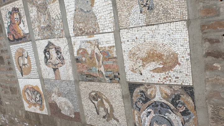 Mosaic murals on old walls.