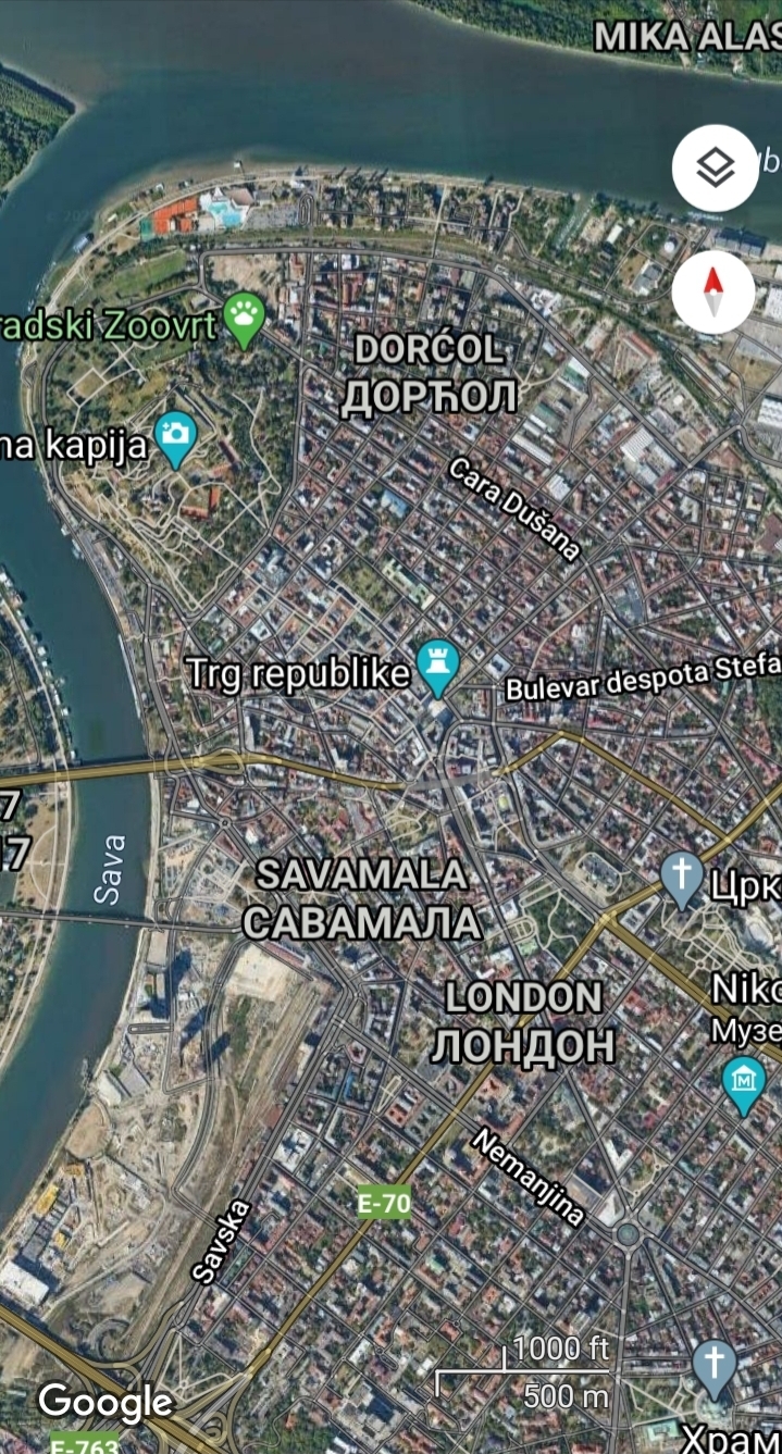 The central street view on map of Belgrade.