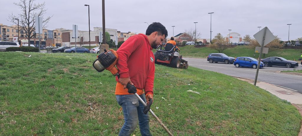 잔디를 깍고 있다.