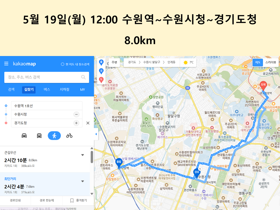 | 19 | 월 | 수원 | 12:00 수원역~수원시청~경기도청 | 8.0 |
