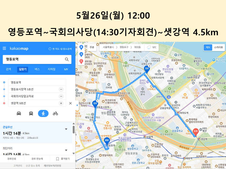 | 26 | 월 | 서울 | 12:00 영등포역~국회앞기자회견(14:30) ~샛강역 (저녁 조선일보처벌행진) | 4.5 |