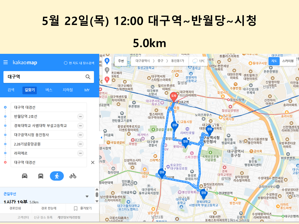 | 22 | 목 | 대구 | 17:00 대구역-반월당-대구시청 | 5.0 |