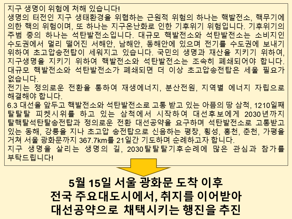 생명탈핵실크로드 | [성원기] 2025 탈탈탈 (탈핵탈석탄탈송전탑) 행진 - Daum 카페