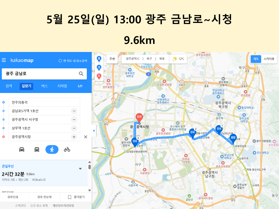 | 25 | 일 | 광주 | 13:00 광주 금남로- 광주시청 | 9.6 |