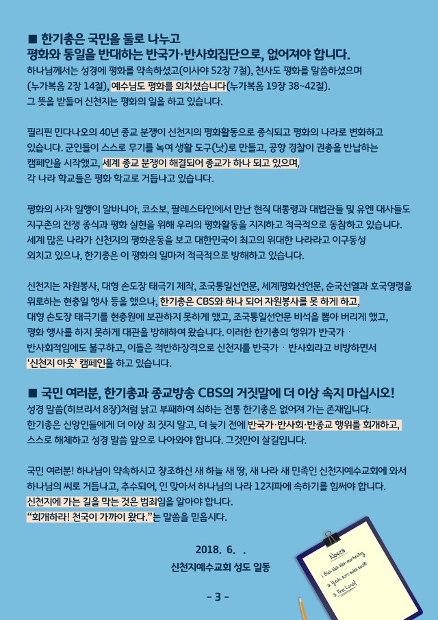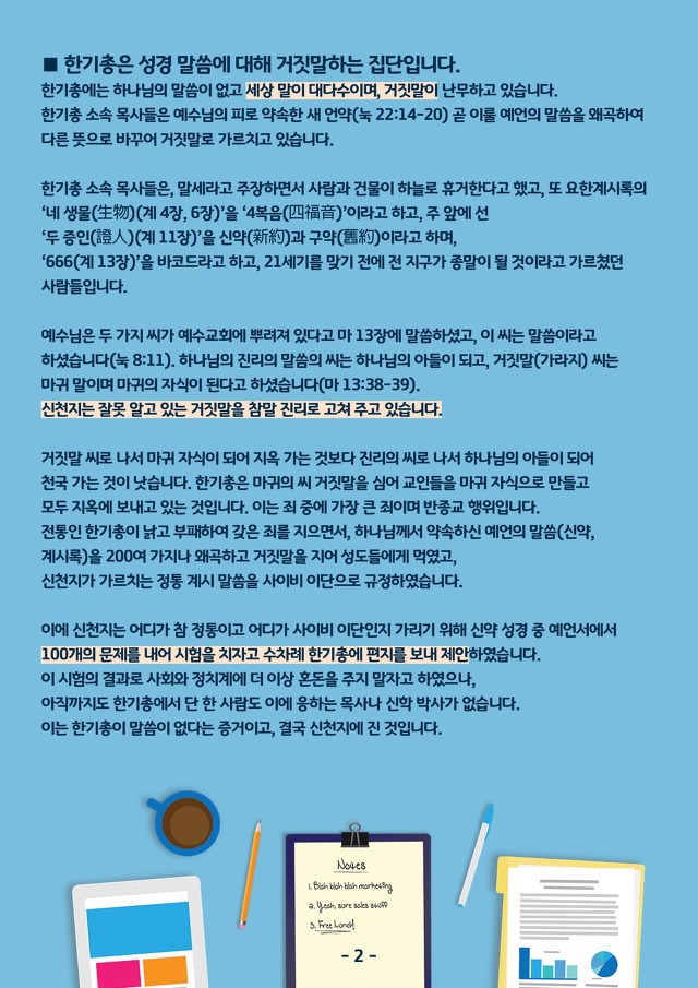 한기총의 거짓말로 사회악으로 낙인된 신천지도 사실은 법적으로 인정받고, 검찰청에서도 조사가 나와