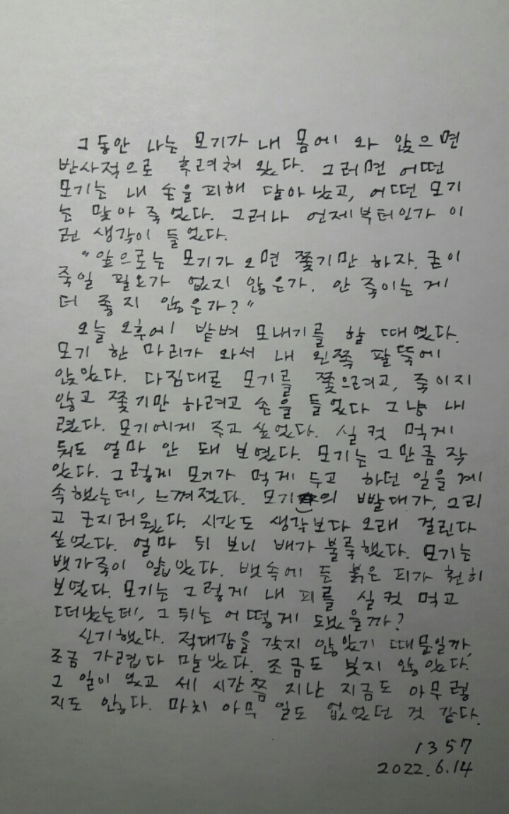 개구리의 엽서1357/모기에 피를 내어주니 작성자개구리|작성시간22.06.14|조회수34 목록 댓글 1 글자크기 작게가 글자크기 크게가 개구리의 엽서 다음검색 현재 게시글 추가 기능 열기 북마크 공유하기 신고 센터로 신고 댓글 댓글 1 댓글쓰기 답글쓰기 댓글 리스트 작성자소림사(푸른밭) | 작성시간 22.06.14 우와 대단해요.따라갈 수 없는경지입니다. 댓글 전체보기