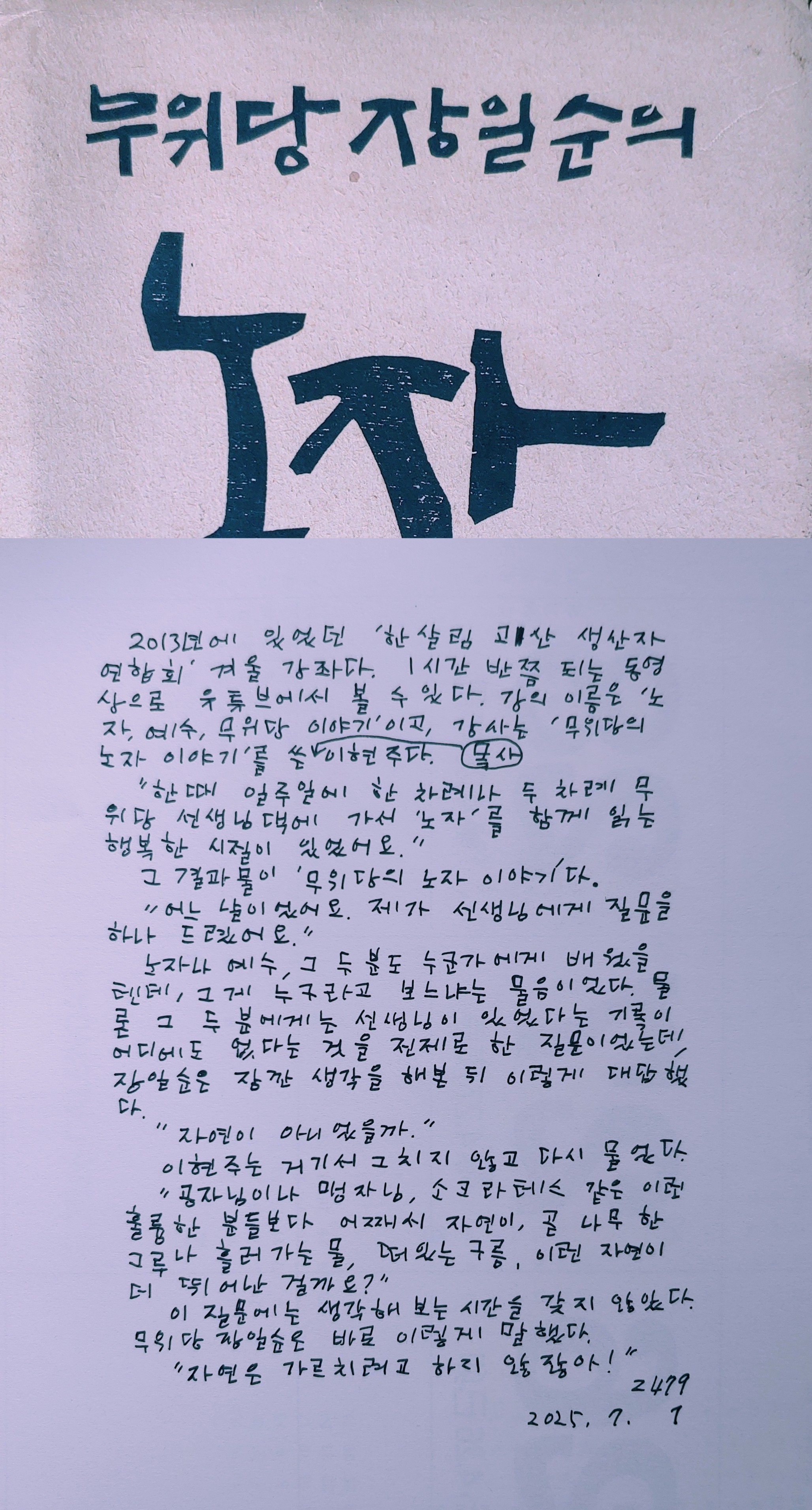 개구리의 엽서 2479/예수의 선생님은 누구인가? 작성자우물 안의 개구리|작성시간25.07.02|조회수49 목록 댓글 0 글자크기 작게가 글자크기 크게가 다음검색 현재 게시글 추가 기능 열기 북마크 공유하기 신고 센터로 신고 댓글 댓글 0 댓글쓰기 답글쓰기 댓글 리스트