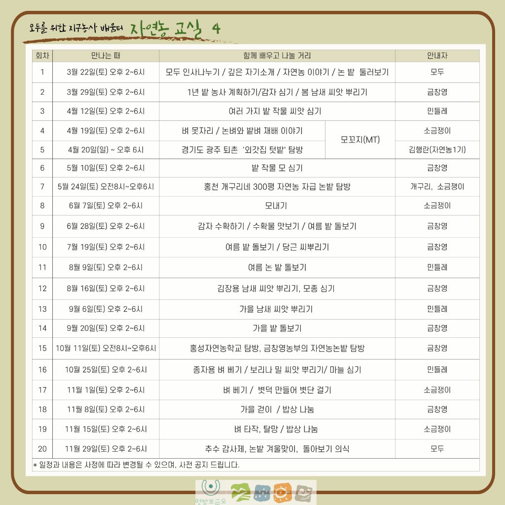 자연농교실은 3월부터 11월까지 1년 과정입니다.