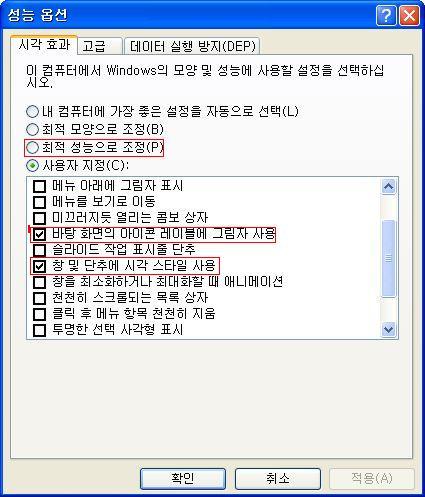 내컴퓨터 오른쪽클릭 - 고급탭 - 성능(설정)클릭 하시게되면