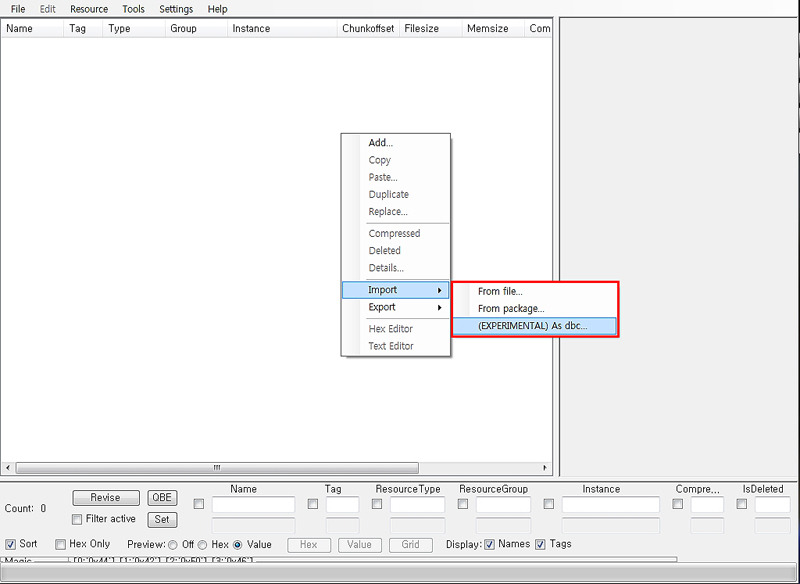 그 중 Import-(EXPERIMENTAL) As dbc항목을 클릭해 주세요.