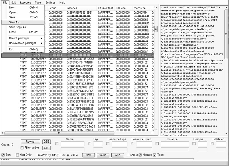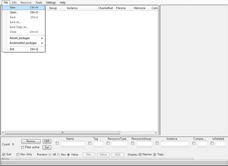 이미 묶은 패키지 파일에 새로운 아이템을 더 넣고 싶으시다면 간단히 1번과정에서 New대신 Open으로 묶은 패키지파일을 연뒤