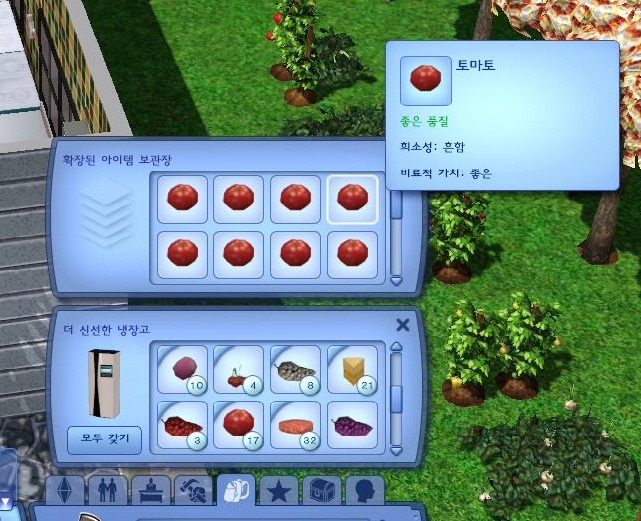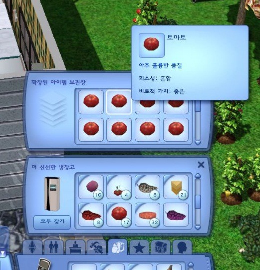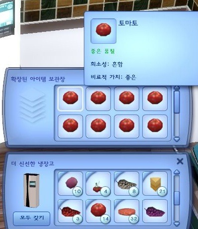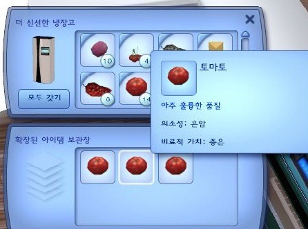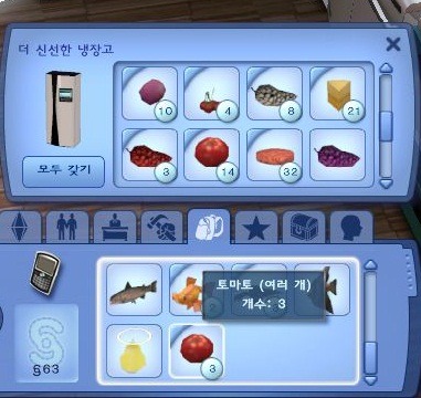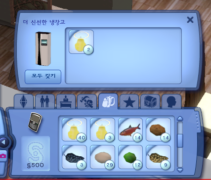 냉장고 열기를 클릭하시면 다음과 같은 창이 뜨죠. 여기서 옮기고 싶은 아이템을 가방에 옮길 때