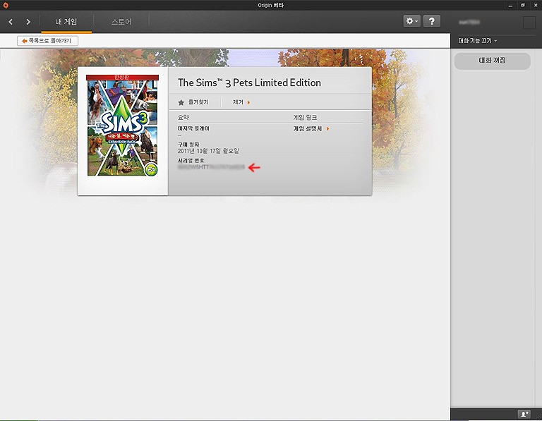 이런 오류메시지와 함께 스토어 페이지에 안 들어가지시는 분들은 왼쪽 하단 'Select Language' 메뉴를 클릭하시고 언어를 English - 미국으로 바꾸시면 됩니다1. EA오리진에서 디지털 다운로드 하셨거나, DVD(=CD)구입 후 오리진 프로그램에서 시리얼 넘버를 등록하여 정품 등록을 하신 분들은... 오리진 프로그램 '내 게임' 목록에서 시리얼 번호를 확인하실수 있습니다.