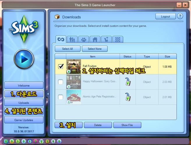 (설치가 끝나면 My Documents\Electronic Arts\심즈 3\Downloads의 Sims3Pack은 지워도 괜찮습니다)