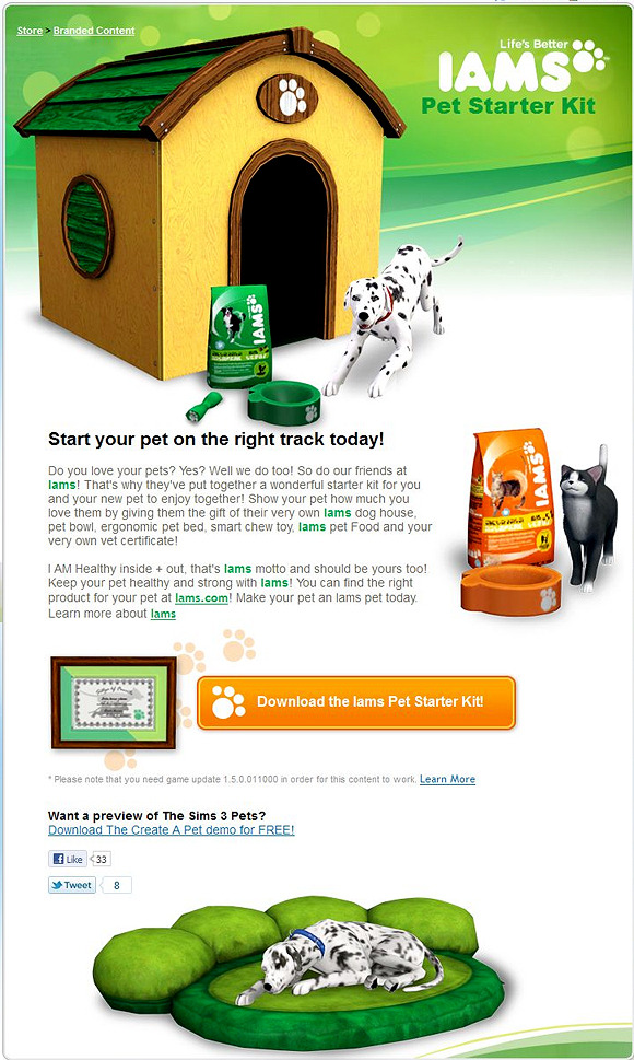Store - Branded Content - Iams Pet Starter Kit 순서로 들어가시면 됩니다.