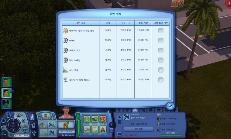 당신은 스타입니다! 도시에서 가장 큰 공연장에서도 당신을 초대하고 싶어 합니다! 이제 대박이 났으니 한 순간도 놓치지 말고 즐기세요! | 월화수목금토일 | 주급 | $2,000 | ||