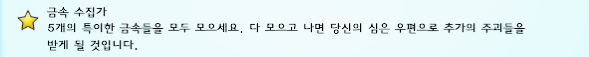 | 01)제련된 금속 주괴를 카터의 전시대에 꽉 채우면 활성화하기...메뉴가 활성화됩니다 | |