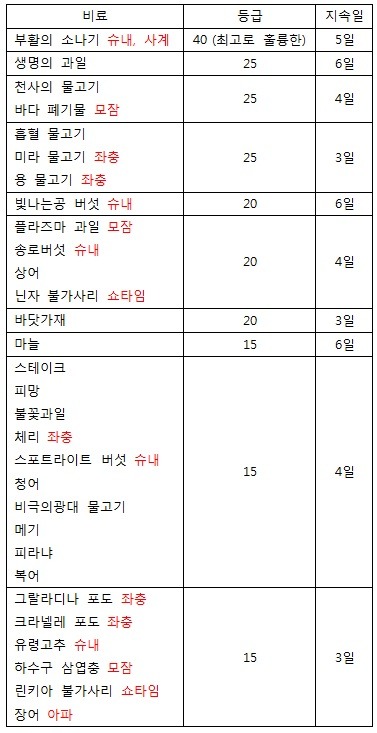 가장 효과가 높은 비료 중심으로 가져왔구요