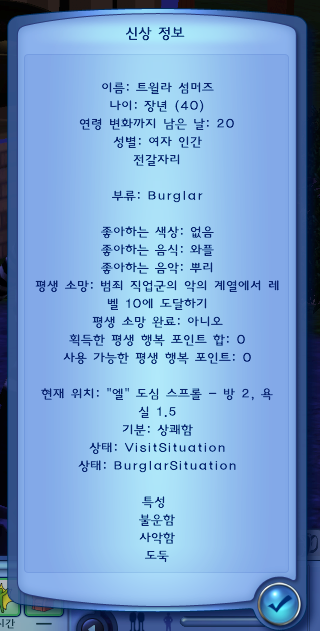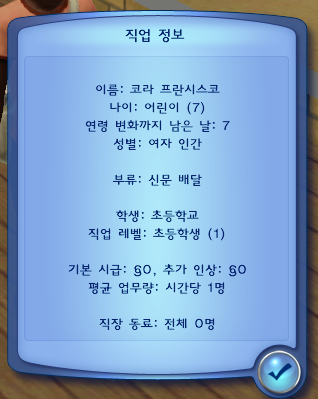 직업이 있을 경우 일하는 요일, 시간, 직장동료들 이름, 출신 고등학교까지 "직업 정보"에 표시됩니다.