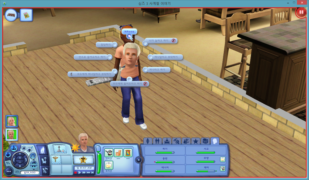 일반적으로 물건을 누르면 Nraas가 뜨지 않습니다.