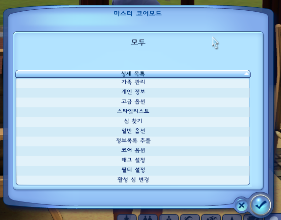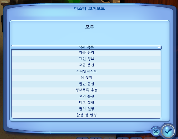 즉, "졸리나 집 클릭 - 마스터코어모드 - 심 관리"는