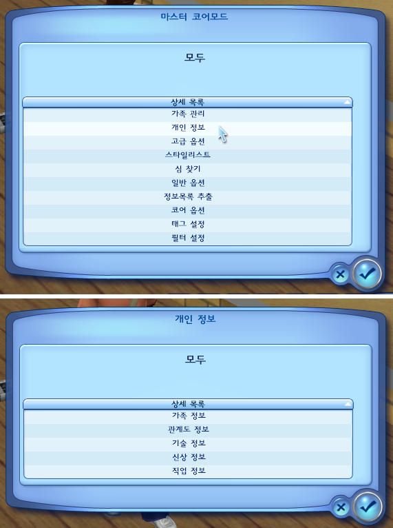아까 설명드렸다시피 '심 관리'를 누르면 심을 누르고 마스터코어모드를 켠 것과 동일한 화면이 나옵니다.