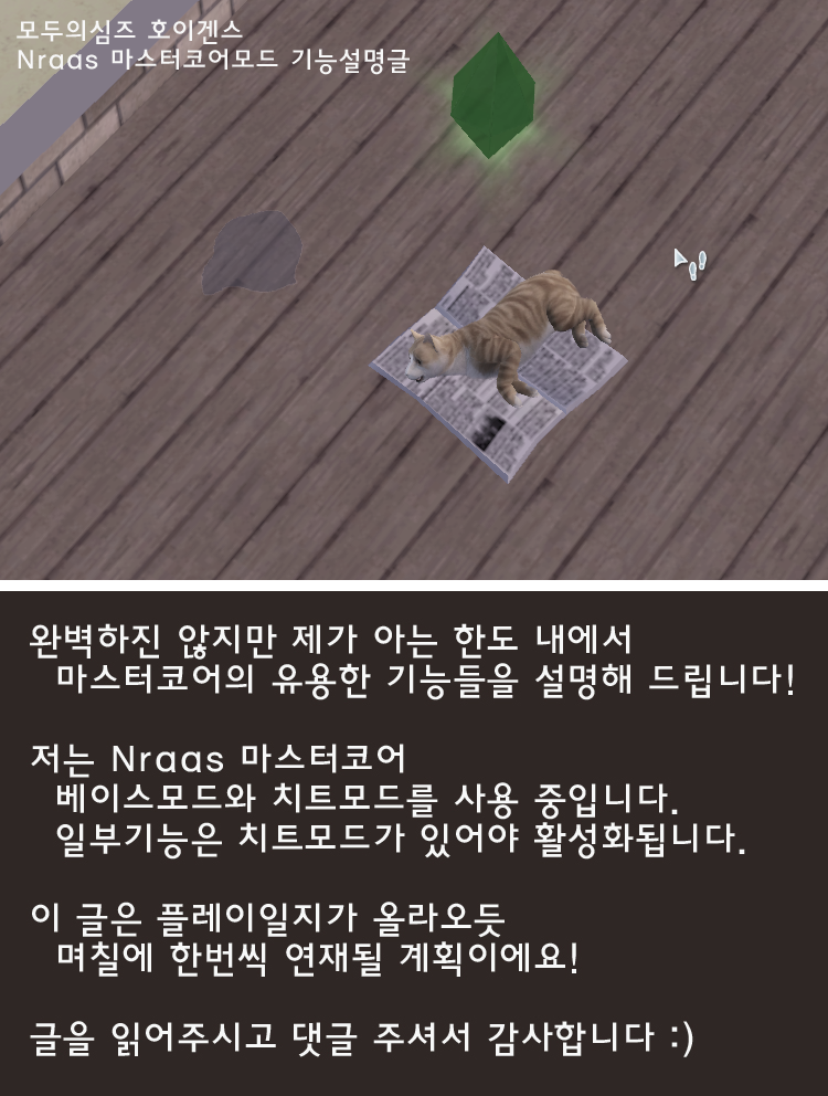 고양이를 누르고 마스터코어모드를 켰을 때의 화면입니다.