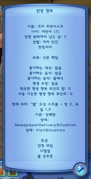 이 아이는 NPC 심이어서 정보가 이 정도이지만,