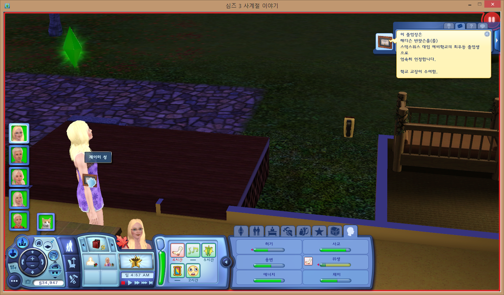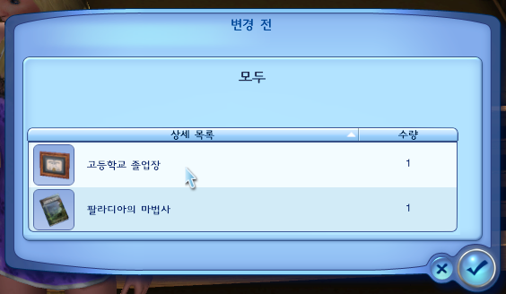 확인을 누르자 제이미 가방에 졸업장이 두 개가 되었습니다.