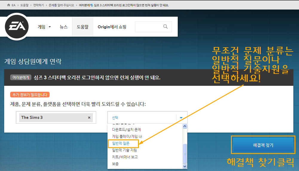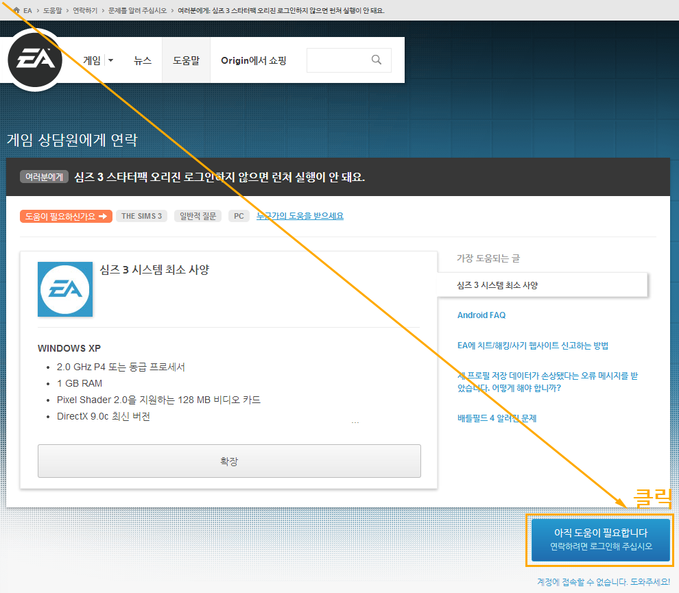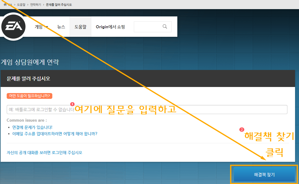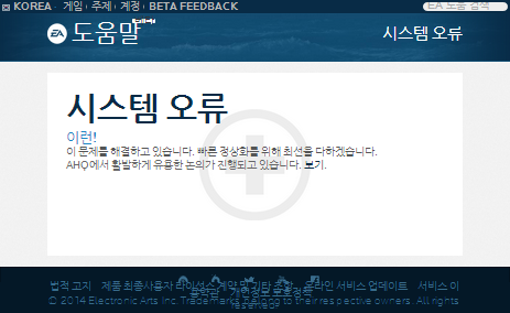 EA 도움말 센터 베타로 리뉴얼되어서 위 스샷 처럼 뜨면서 안 되는 분들은