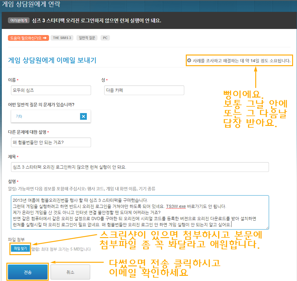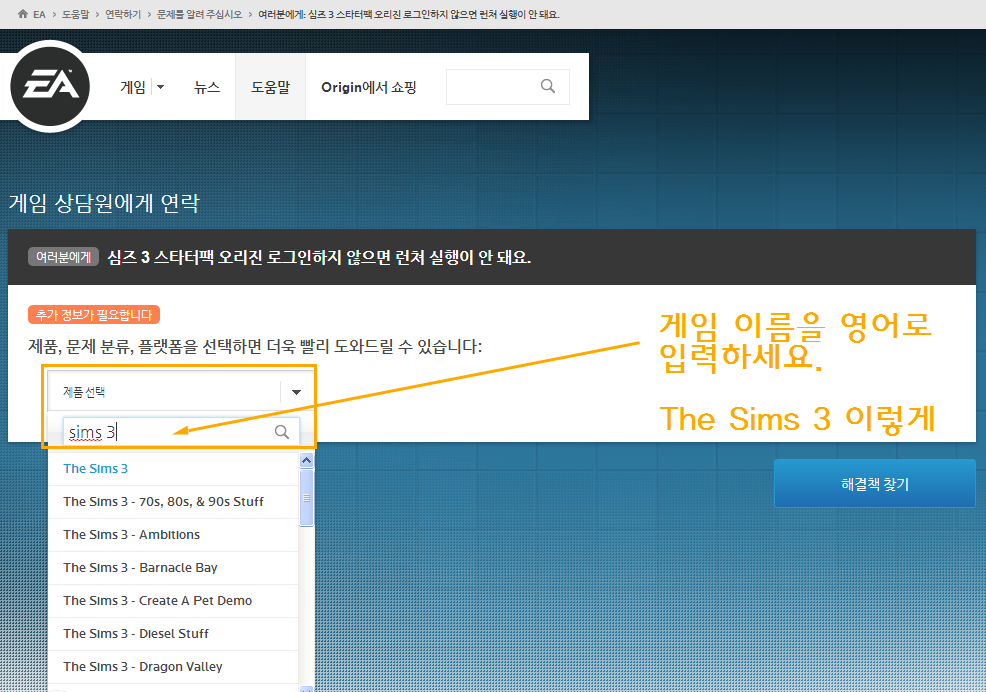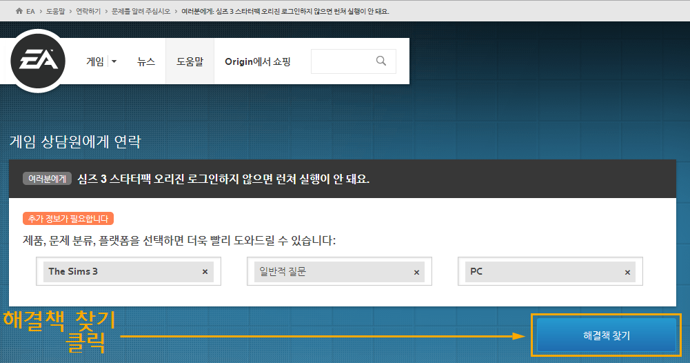 그런데 EA 도움말센터가 그새 리뉴얼되었는지 이 글은 더 이상 도움이 안 될 듯 하네요.