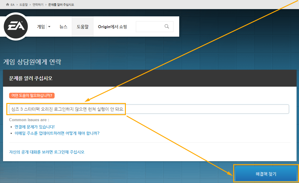 먼저 EA 도움말센터 홈페이지에 들어갑니다.