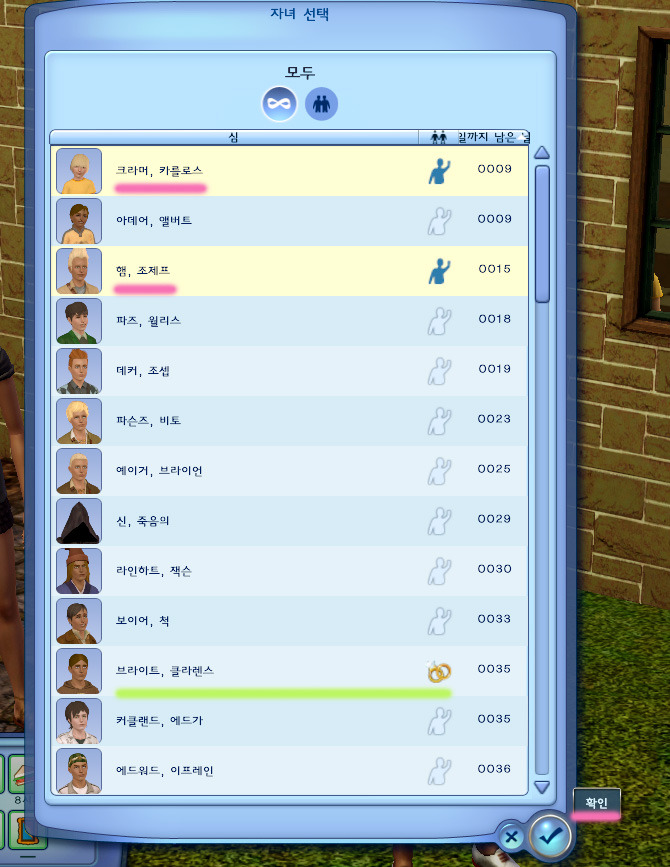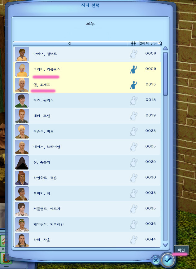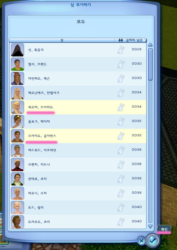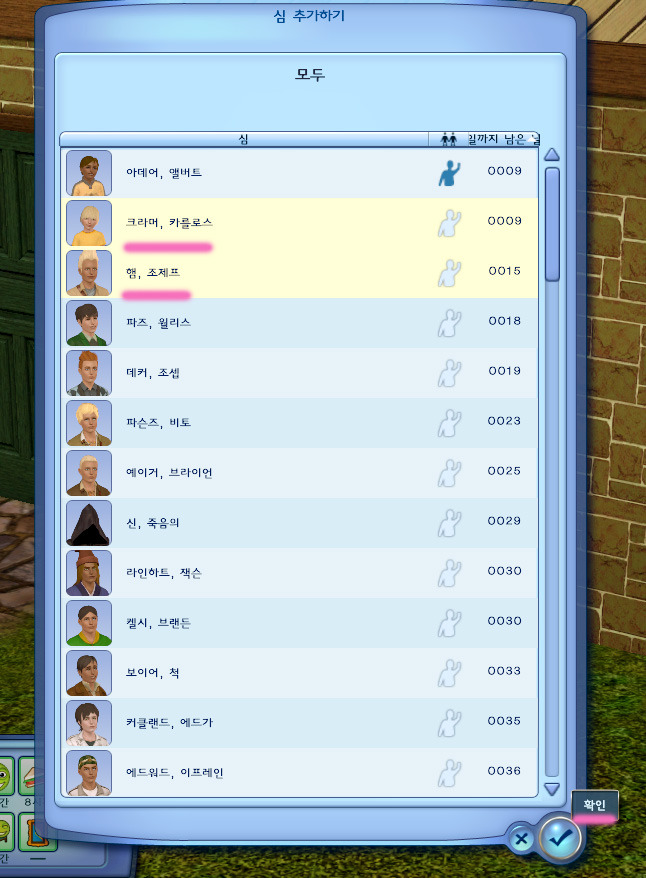왜냐면 심 추가할때는 마을에 사는 심은 전부 다 나오기 때문이예요.