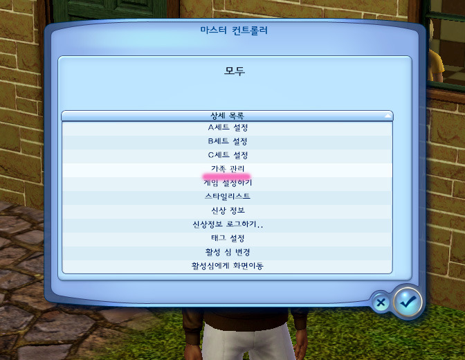 -> 마스터 컨트롤로 창 가운데 있는 '가족 관리'를 눌러 주세여
