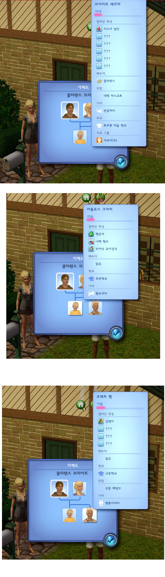 -> 집 클릭하면 '브라이트 가족' 이라고 나오네요. 이제 진짜 완성ㅠㅂㅜ)~!