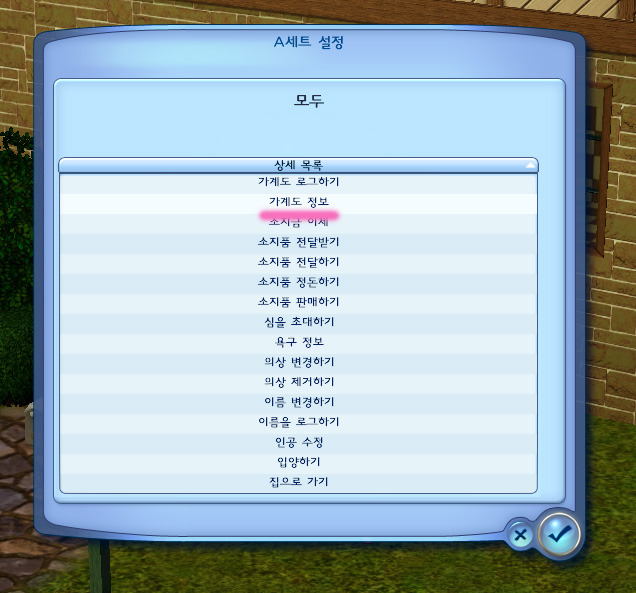 -> 다 고르신 다음 반드시 '취소' 해서 마을화면으로 나오셔야 되요!