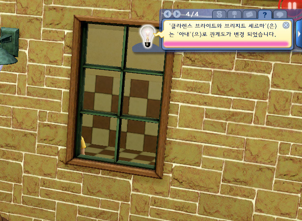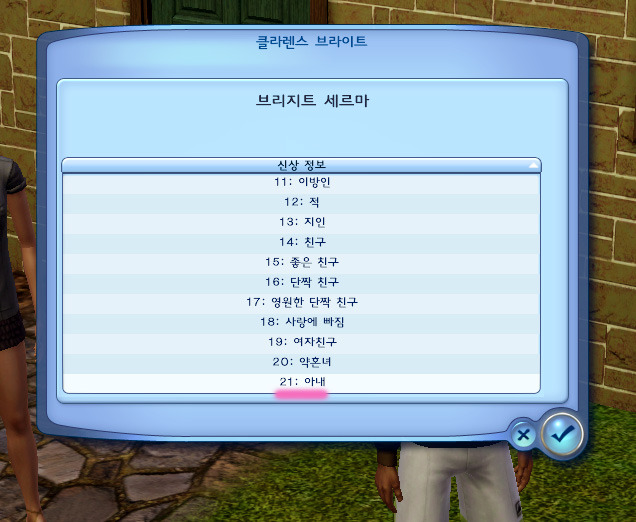 -> 성공하면 오른쪽 알림창에 후두둑 '아내'가 되었다고 뜹니다.