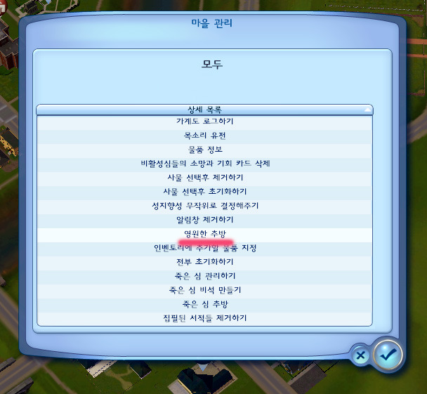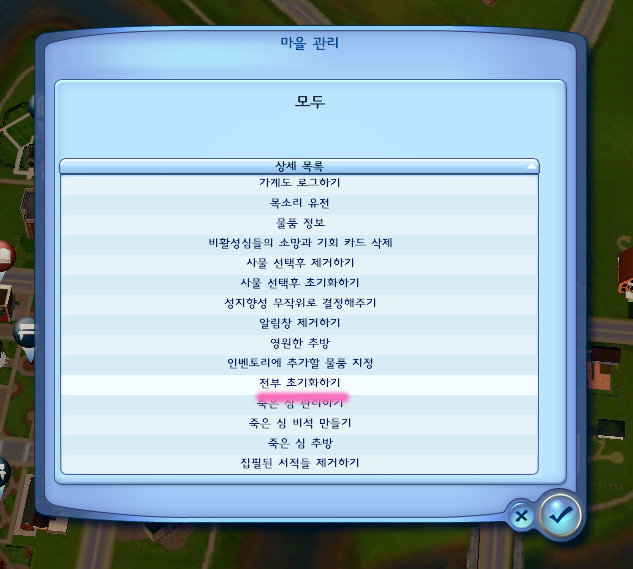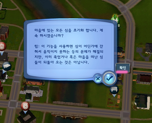 (제가 생각하기에 이 '마을 초기화 기능은 NRaas 코어모드의 핵심기능이라고 생각 되어요.