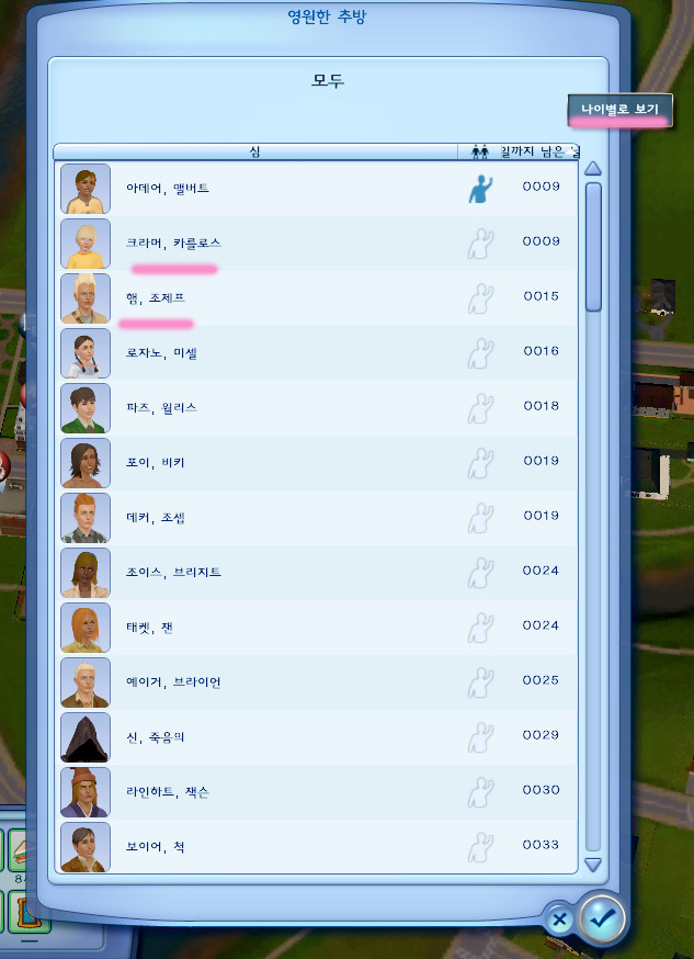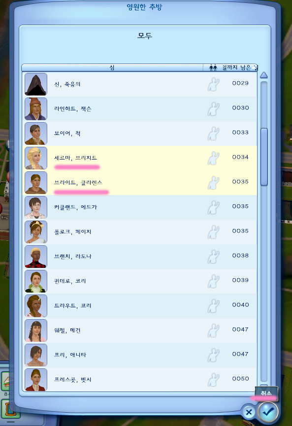 다만 마을 초기화 할때 주의하실점은 1. 출근이나 등교하기 전에 해주세용. 심들이 전부 집으로 리셋되요. 저는 아침 6시 전후에 해줍니다. 2. 기회카드가 사라져요! 직업별로 한번밖에 못받는 기회카드도 있으니 기회카드 완료 후 초기화 해주세여. 3. 청소년이 댄스파티 계획이 생성되기 전에 초기화 해주세요! 댄스파티 열린다고 알림창 뜬 다음에 초기화 해버리면 리무진은 오지만 댄스파티 못가게되요 ㅜ ㅜ