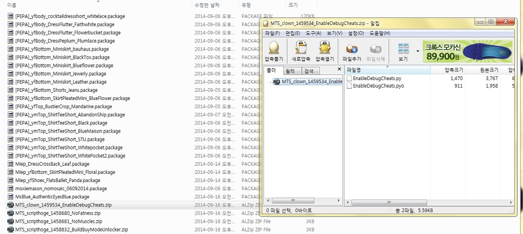 근데 이 심즈4는 심즈3 와 다르게 모드 폴더내에 패키지 폴더를 넣고 그안에 또 폴더를 넣으시면