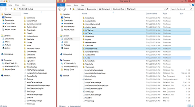 기존의 심즈3 폴더에서 DCCache, DCBackup, InstalledWorlds, Saves를 빼서