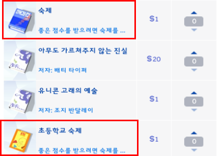 컴퓨터 클릭 - 더보기 - 쇼핑 - 책 구입하기 - 아동용 클릭 - 숙제 or 초등학교숙제 구매