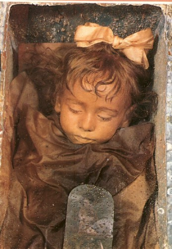 미라의 주인공은 1920년 12월 2살의 나이로 기관지 감염으로 세상을 떠난 '로잘리아 롬바르도'다. 당시 이탈리아의 팔레르모에 거주하던 죽은 소녀의 부모는 딸이 살아있는 것 같은 모습으로 세상에 남길 원해서 '사로피아'라는 의사에게 특별한 부탁을 했고, 의사는 자신만의 방부처리 방법으로 죽은 로잘리아에게 알려지지 않은 화학 물질을 주사했다.