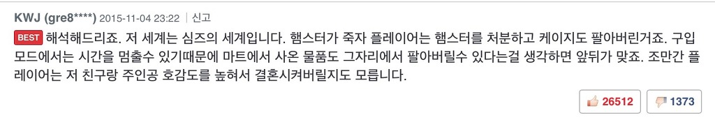 근데 베플 심즈 얘기가 뙇!!
